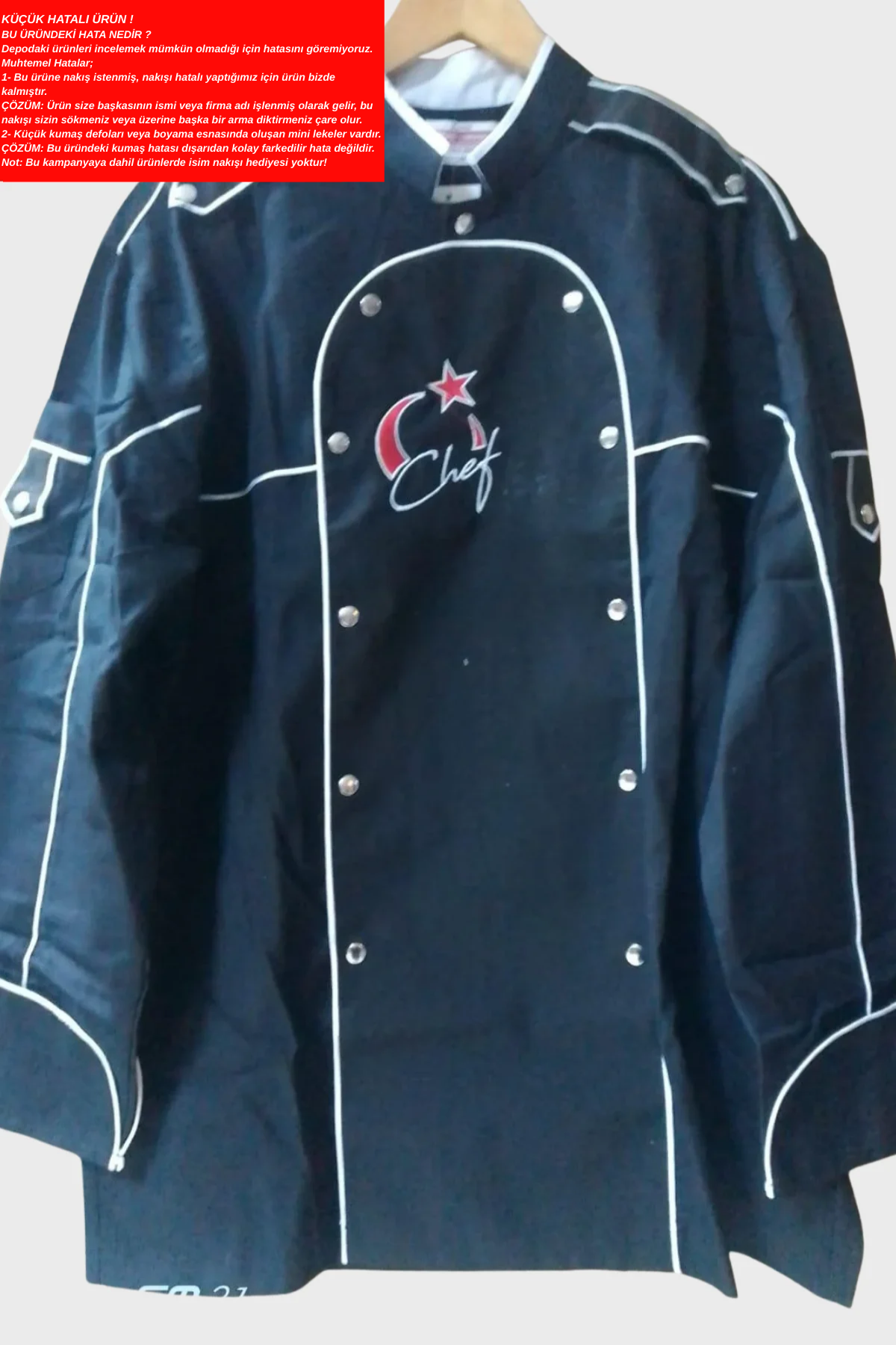 Küçük hatalı ürün I Aşçı Ceketi Şef Ceketi Aşçı Kıyafeti Aşçı Forması Aşçı Gömleği Aşçı Elbiseleri